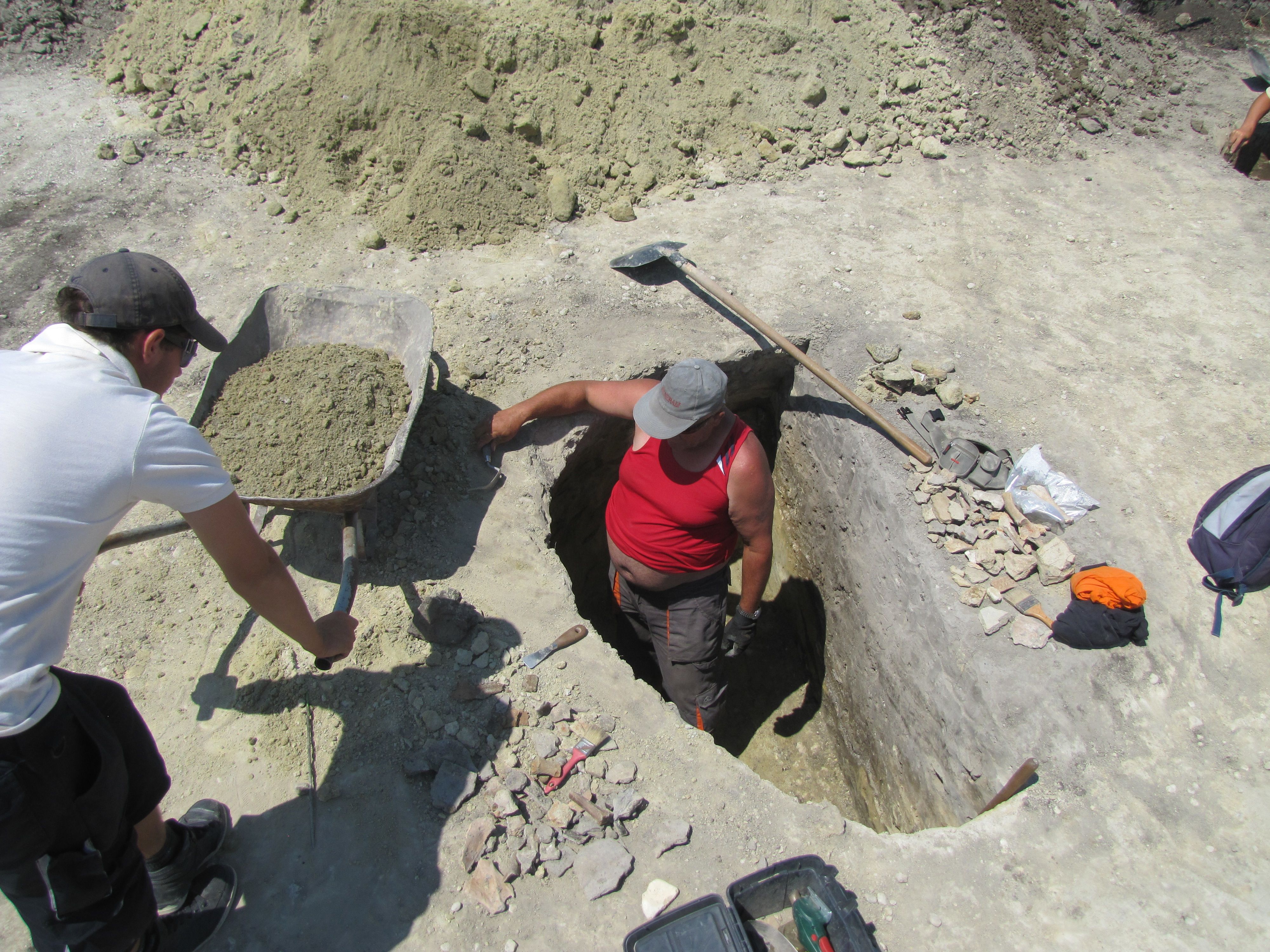 A régészek szerencséje: intenzív zivatar vonult el a feltárási terület mellett, azonban az eső minket nem érintett, tudtuk folytatni a munkát.
