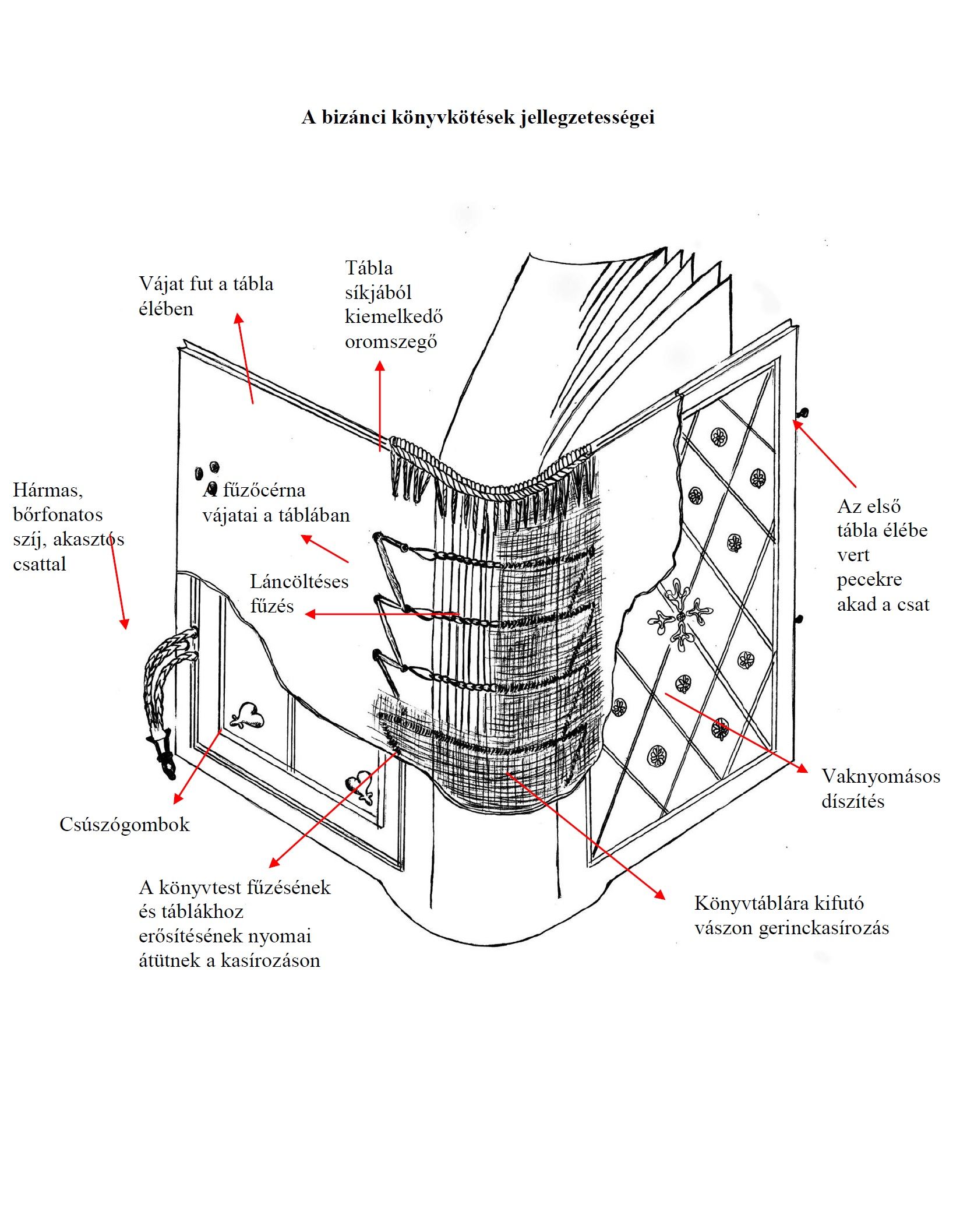 A bizánci típusú kötések egyik fontos eleme a két- vagy háromágú, laposfonással készült szíjon függő, kengyel alakú csat, mely a tábla keresztmetszetébe vert szeggel záródik. Mivel az eredeti szíjak és csatok elvesztek, a restaurátor újat készíttetett. Ennek pusztán esztétikai funkciója van, a kötetet nem lehet zárni vele.