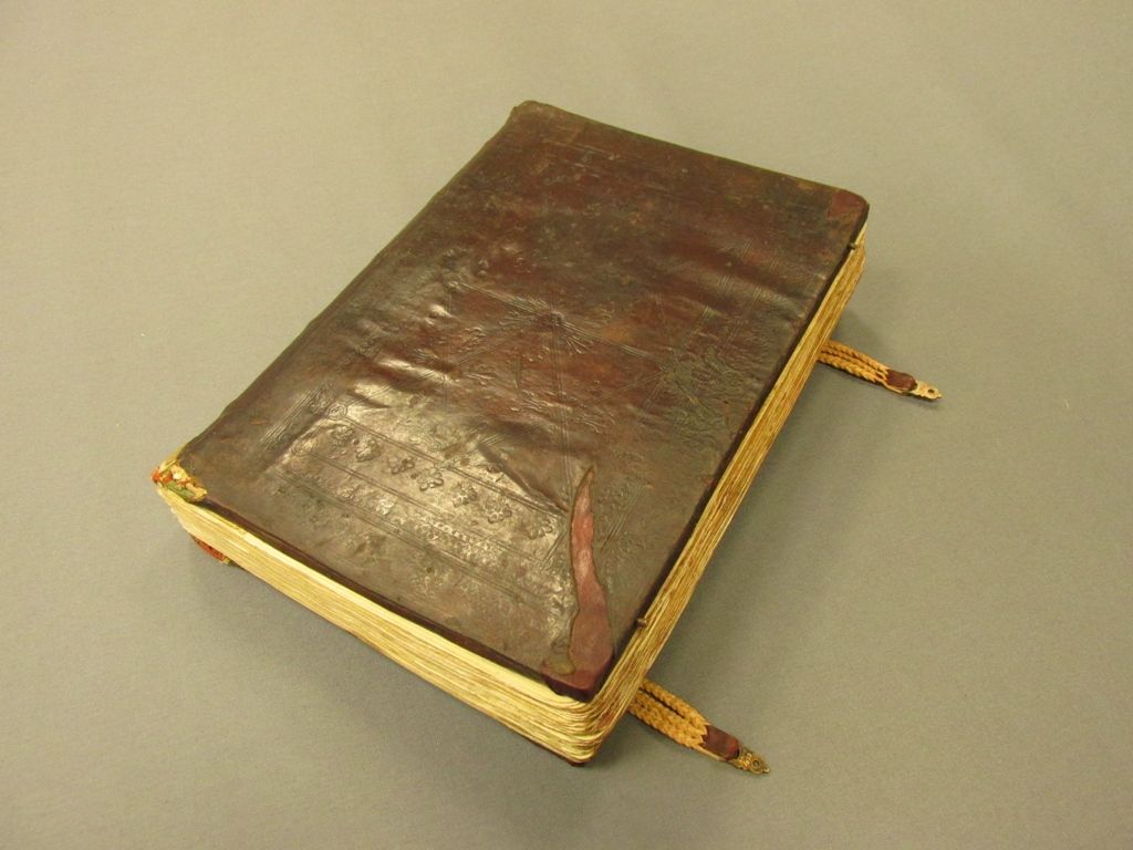 A köteten az elmúlt évszázadok során rengeteg szennyeződés, por rakódott le. A kötésbőr kiszáradt, töredezetté, hiányossá vált. Rovarrágás nyomait lehetett felfedezni rajta. A csatok a bőrszíjakkal együtt leszakadtak, elvesztek. A táblák sarkai hiányosak, a rovarkárnak köszönhetően apró lyukak voltak láthatóak rajtuk. Az egykor vörös metszés megkopott. Beázás nyomai, penészesedés is megfigyelhető volt a könyvön. A lapok elvesztették enyvezettségüket, mállékonyak lettek, gyűrődések, szakadások, hiányok voltak láthatóak. Különféle foltok, például viasz nyomai is találhatóak voltak rajtuk.