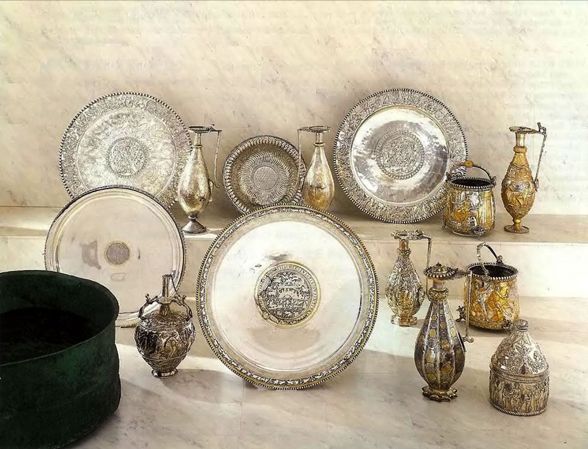 A Seuso-kincs ismert darabjainak képe az 1990-es New York-i árverési katalógusból