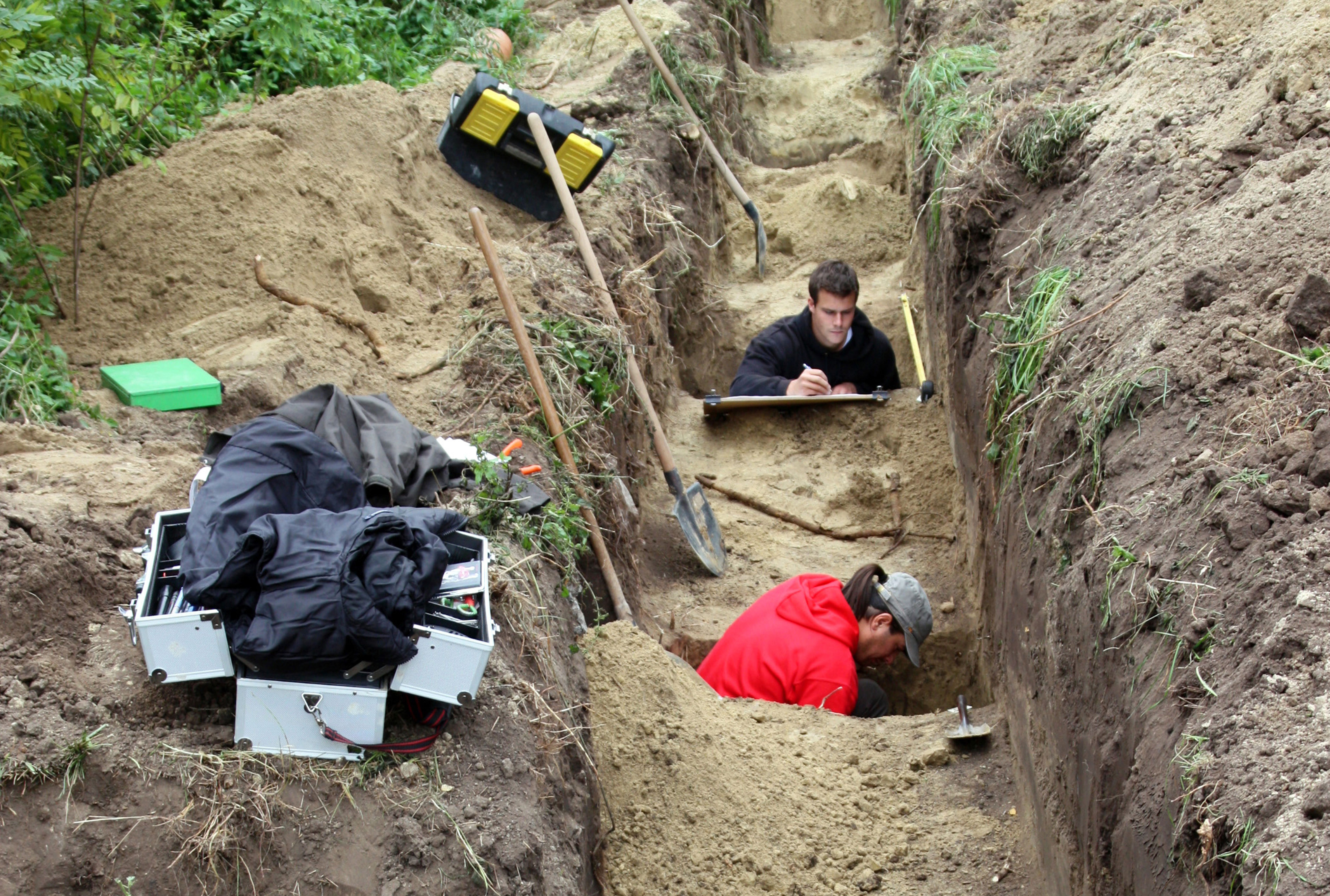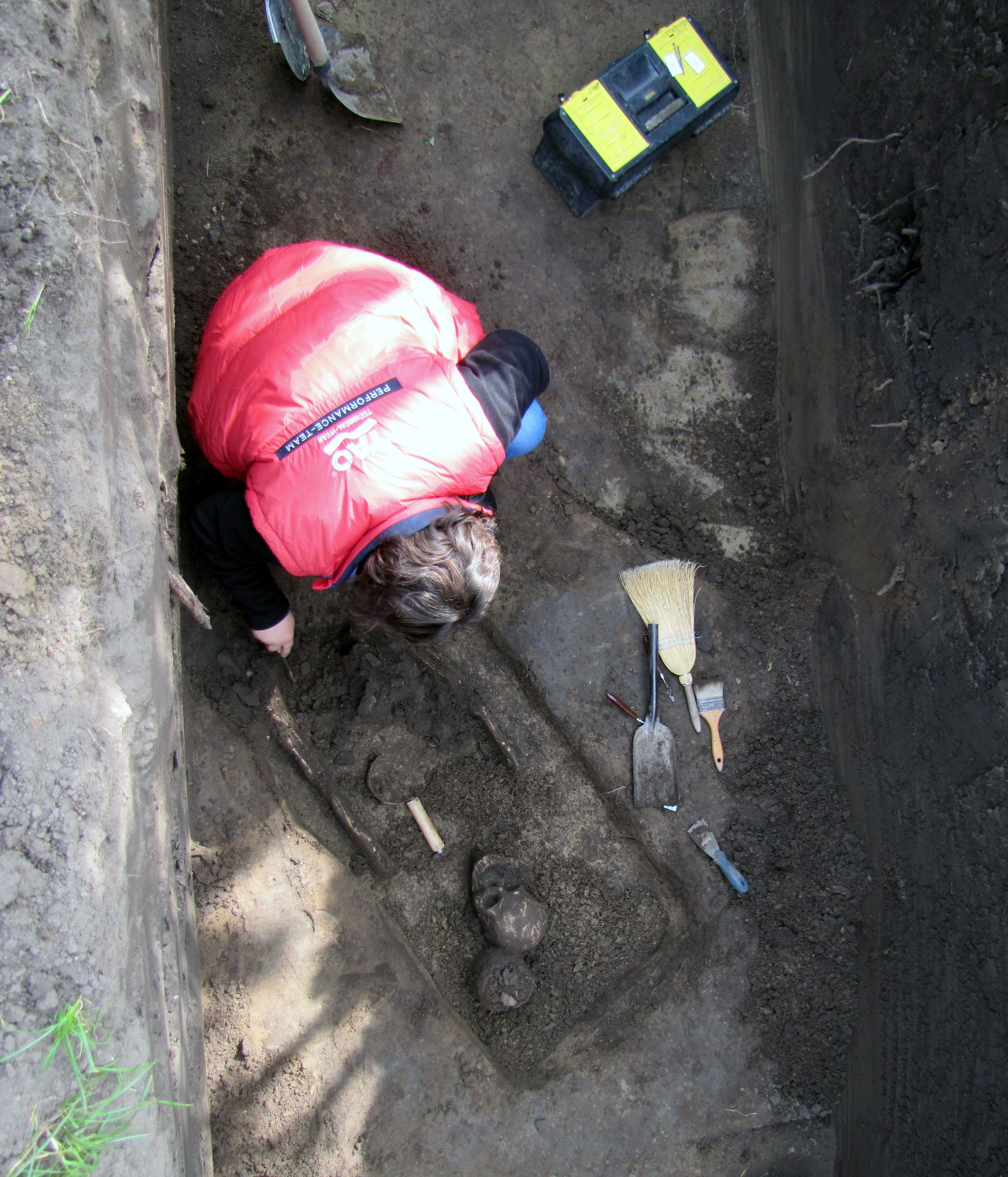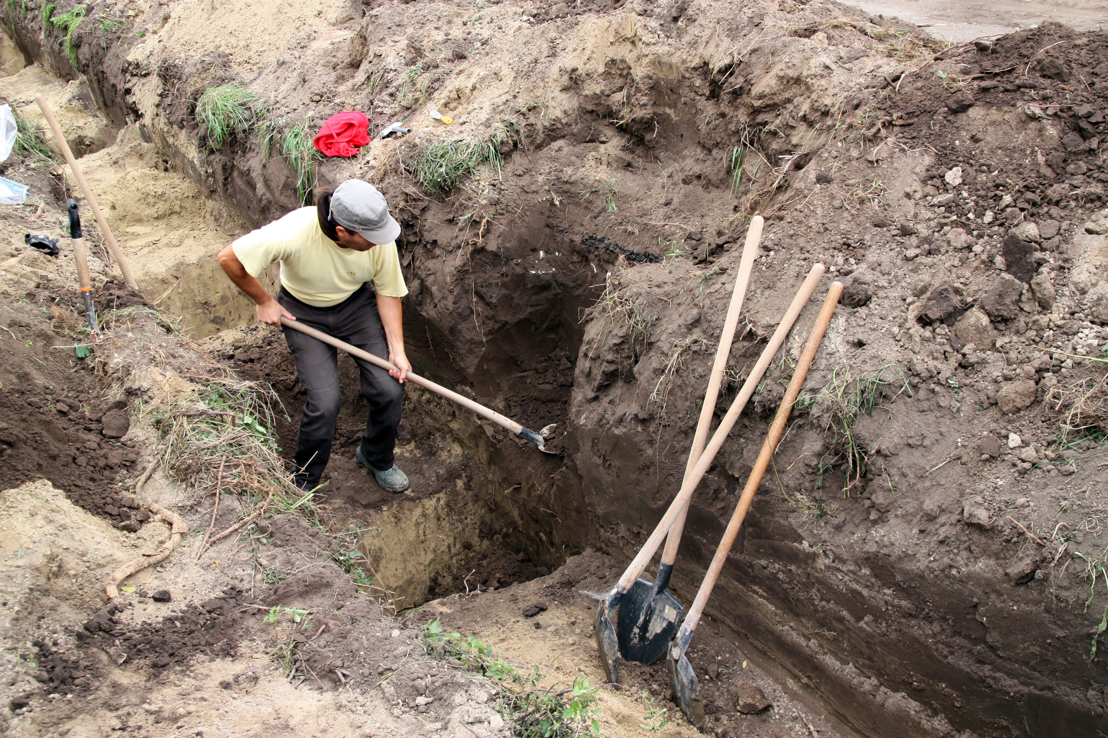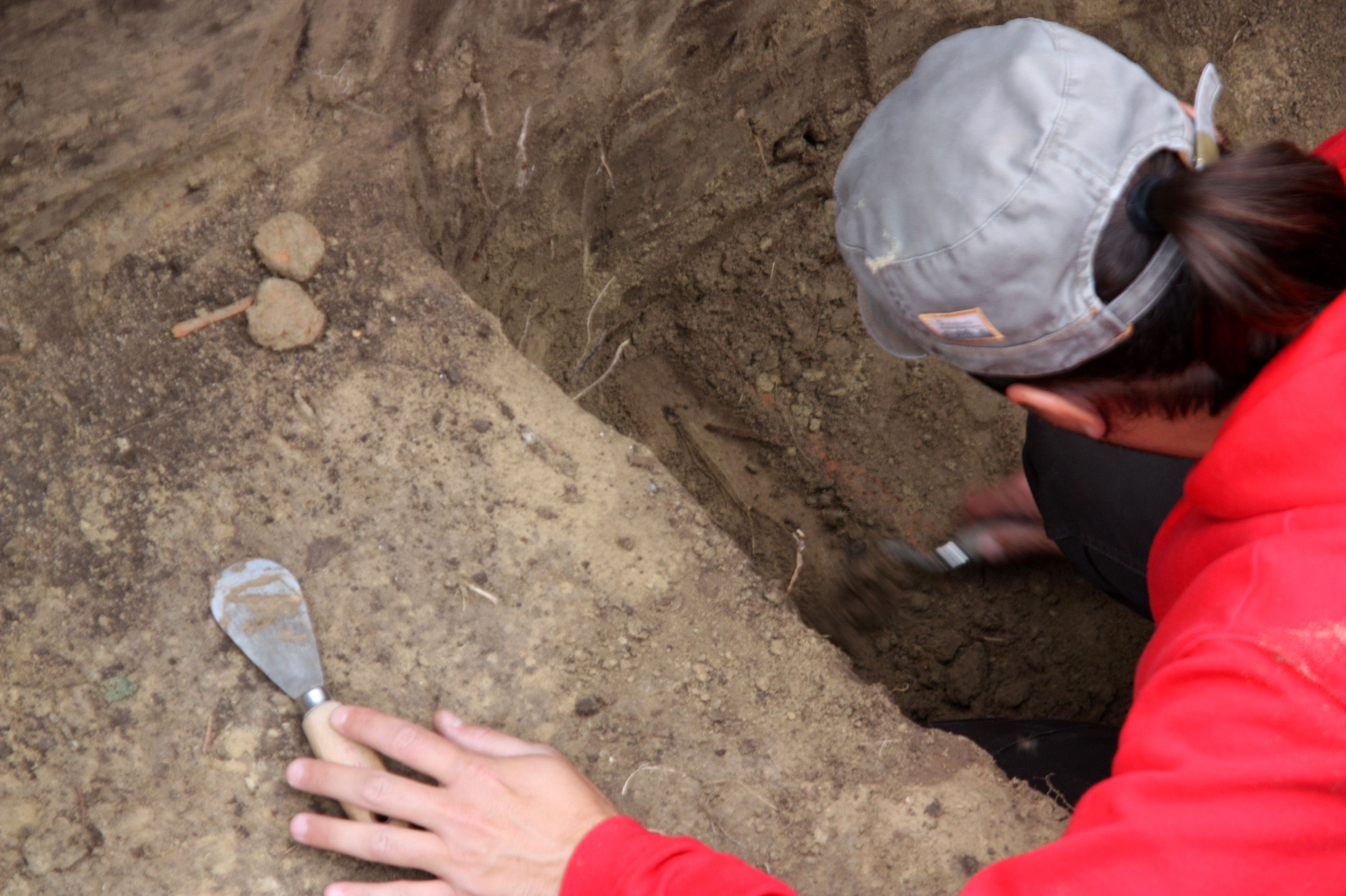 Az ásatás közel egy hónapig tartott 2014. szeptember 25-től. A csatorna helyén a felső humuszréteget elhúzó markoló kanala alatt egymás után rajzolódtak ki a sírgödrök fekete foltjai. A síroknak sajnos csak egy része esett ebbe a másfél méter széles sávba, melyen túl a sírok elejét vagy végét keresve csupán egy keveset áshattunk ki az árok falából.