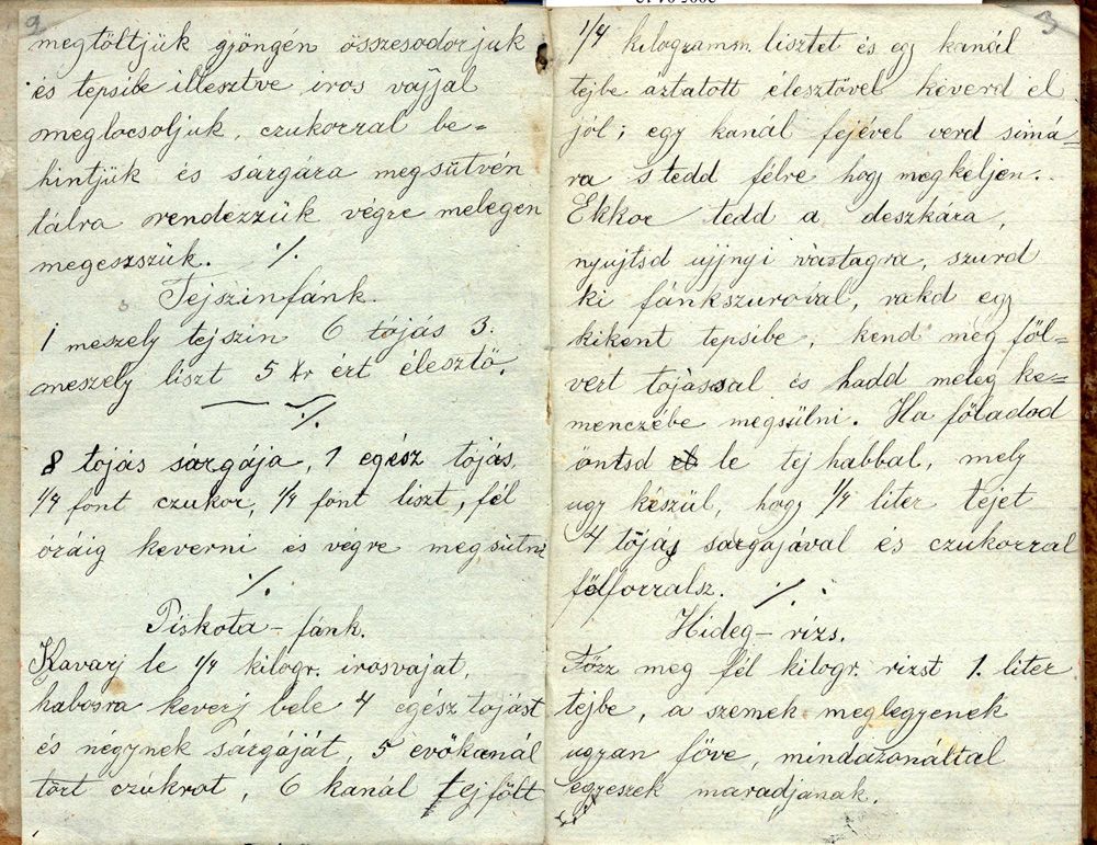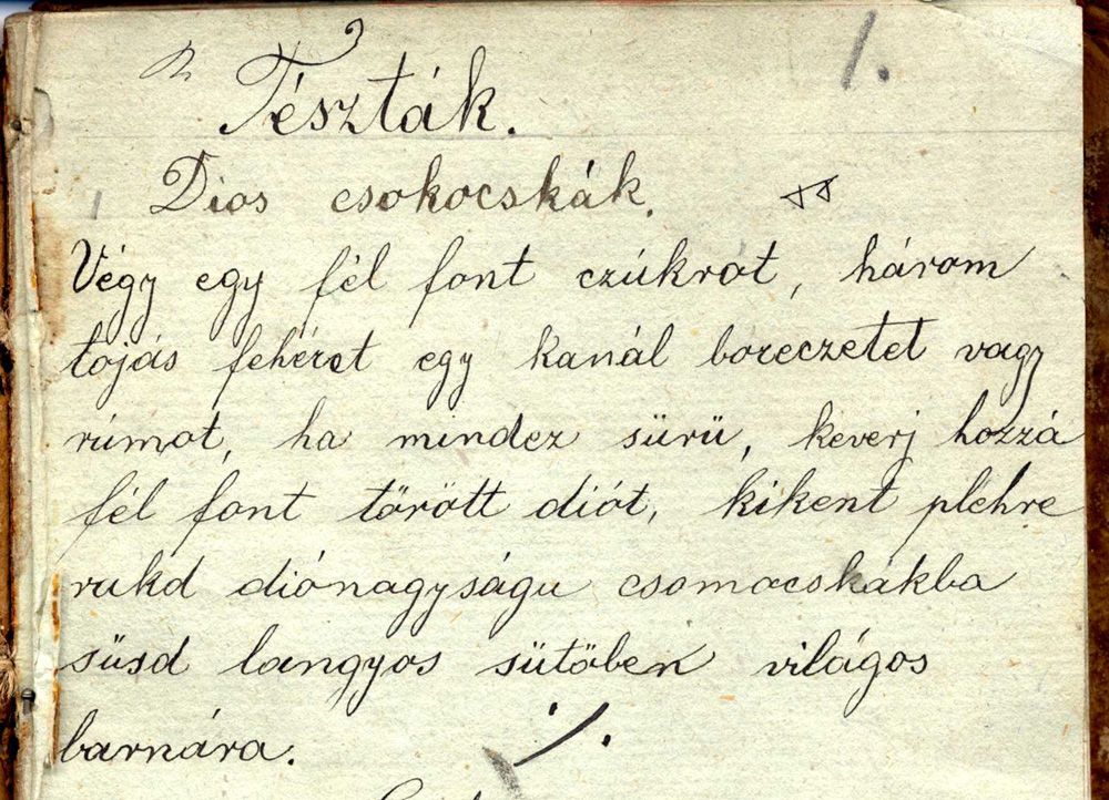 Müller Janka 1895-től vezetett kéziratos szakácskönyvéből, amely ma