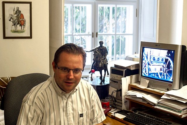 Mráv Zsolt régész irodájában a Magyar Nemzeti Múzeumban. (Fotó: Hajdú D. András)