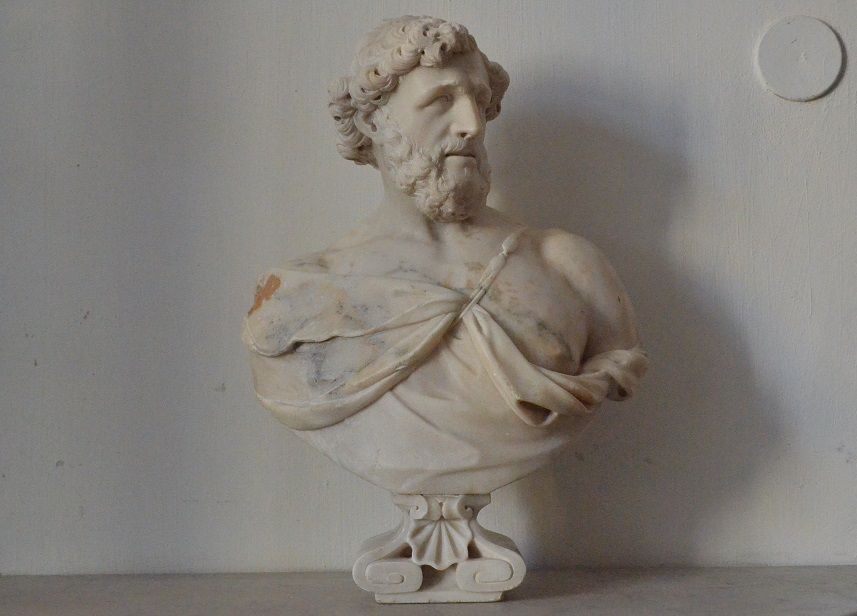 A szakállas férfit ábrázoló kétharmad életnagyságú márvány mellszobrot eddig nem láthatta a nagyközönség. Történetéről mindössze annyit tudunk, hogy 1964-ben leltározták a képzőművészeti gyűjteménybe, talán az egyik Fejér megyei kastélyban állt valaha a könyvtárszobában, de ez már nem bizonyítható. Annyi biztos, hogy nem antik darabról van szó, a haj és szakállviselet alapján a 19. századra tehető a kora. Hogy ki lehet a nemes férfiú, akit e finom kidolgozású büsztben megörökítettek egyelőre rejtély.