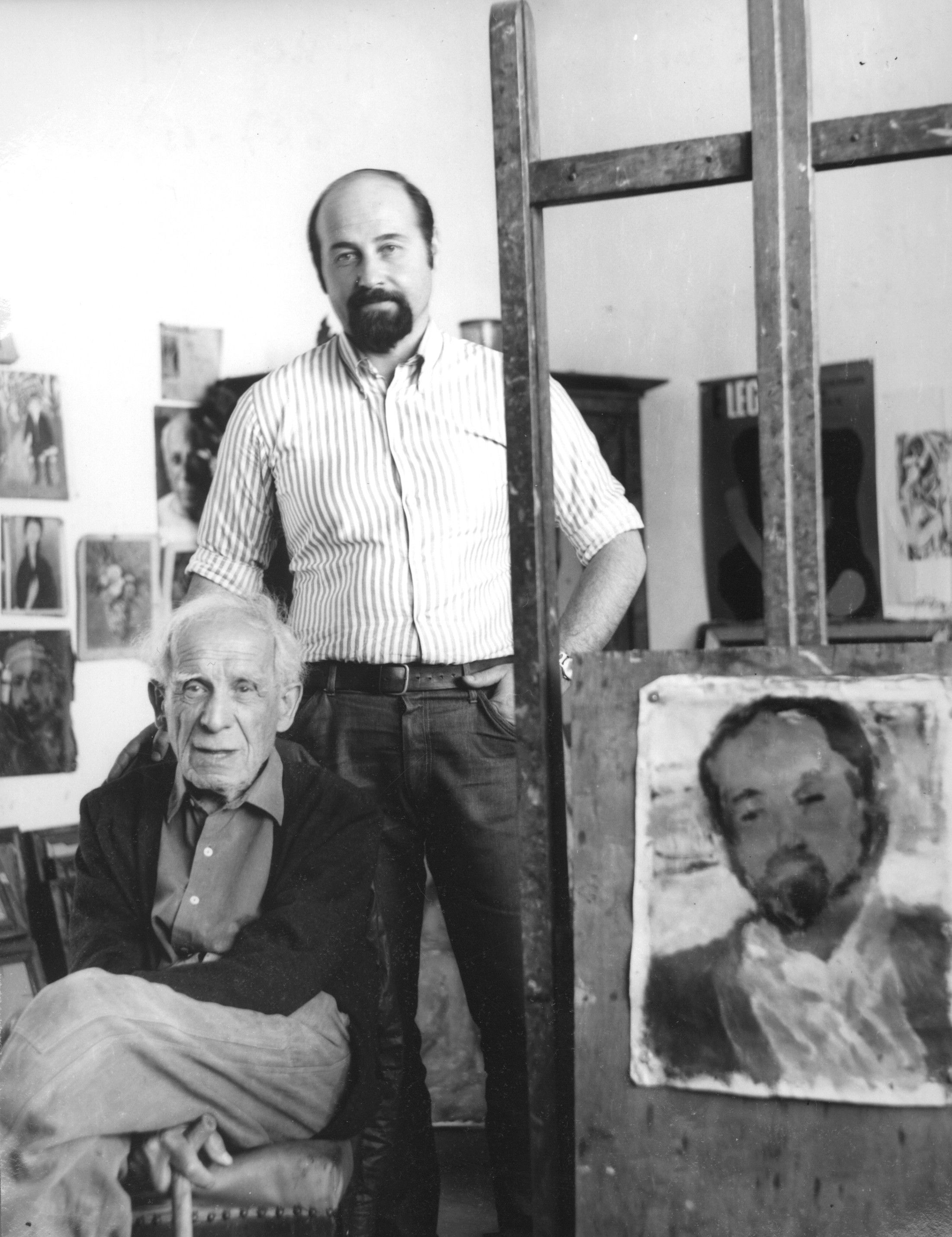 A felvétel Czóbel Béla műtermében, Szentendrén készült, 1973-ban. A festőállványon a befejezés előtt álló Deák portré, melynek jobb felső sarkáról még hiányzik a hangsúlyos, vörös betűs nagy Czóbel szignó.