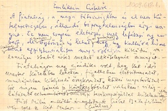 Deák Dénes: Emlékeim Czóbelről című kézirat részlete, a Városi Képtár – Deák Gyűjtemény adattárából (lelt.szám 2009.618.1 )