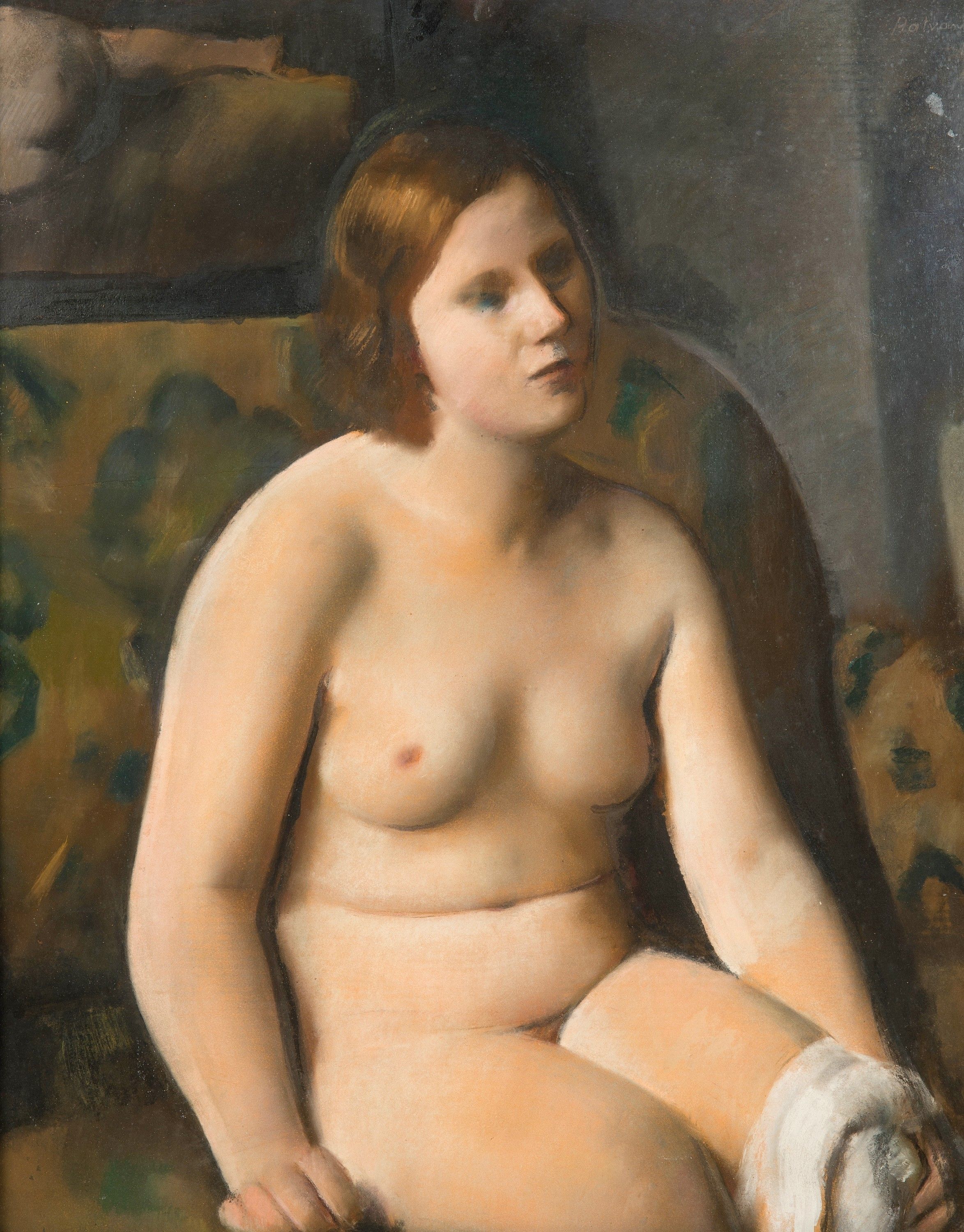 Ülő női akt (leltári szám: VK-DGY 94.129.1. méret: 81,3x65,8 cm, karton pasztell, jelezve jobbra fenn, HATVANY) Fotó: Molnár Artúr