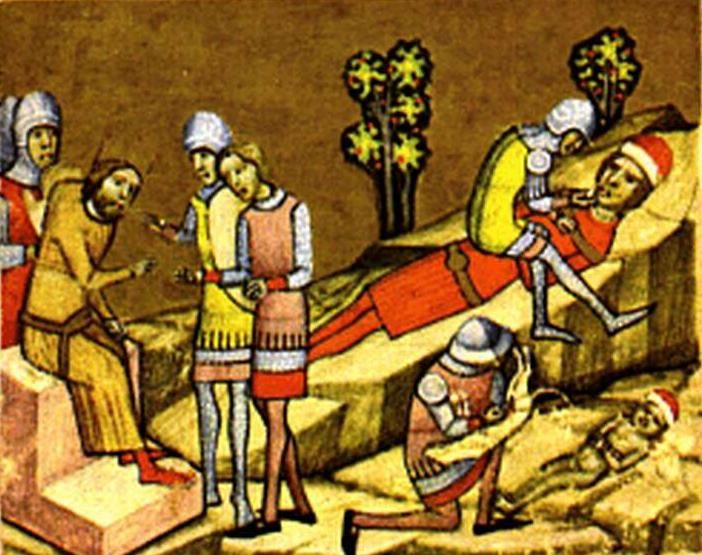 Kép: Álmos herceg és Béla megvakíttatása a Képes Krónikában - forrás Wikimedia Commons
