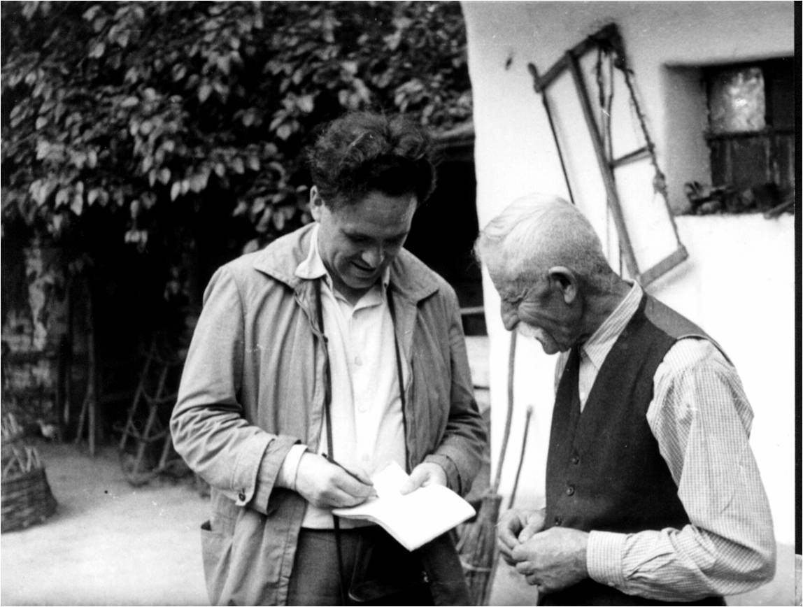 Fotó: Pesovár Ferenc néprajzi gyűjtés közben Enyingen, Bocsor József egykori pusztagazdánál 1962-ben. Pesovár Ernő felvétele