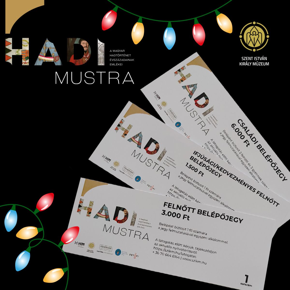 A Hadimustra - A magyar hadtörténet évszázadainak emlékei című kiállításunk az egész család számára értékes és élménydús kikapcsolódást biztosít! Az ajándékjegyek megvásárlására a Rendház információs pultjánál van lehetőség.